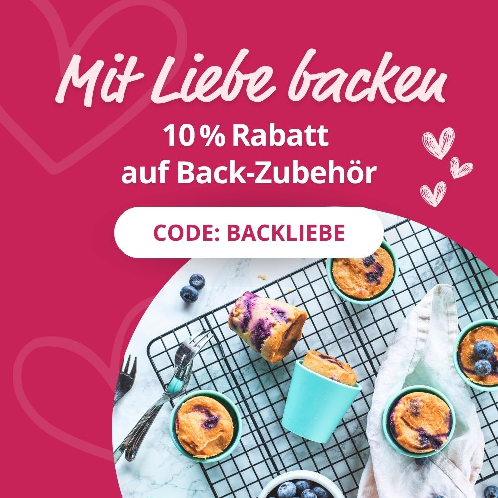 * Bitte beachten Sie, dass der Rabattcode BACKLIEBE nicht zusammen mit dem 15 % Club-Rabatt verwendet werden kann.