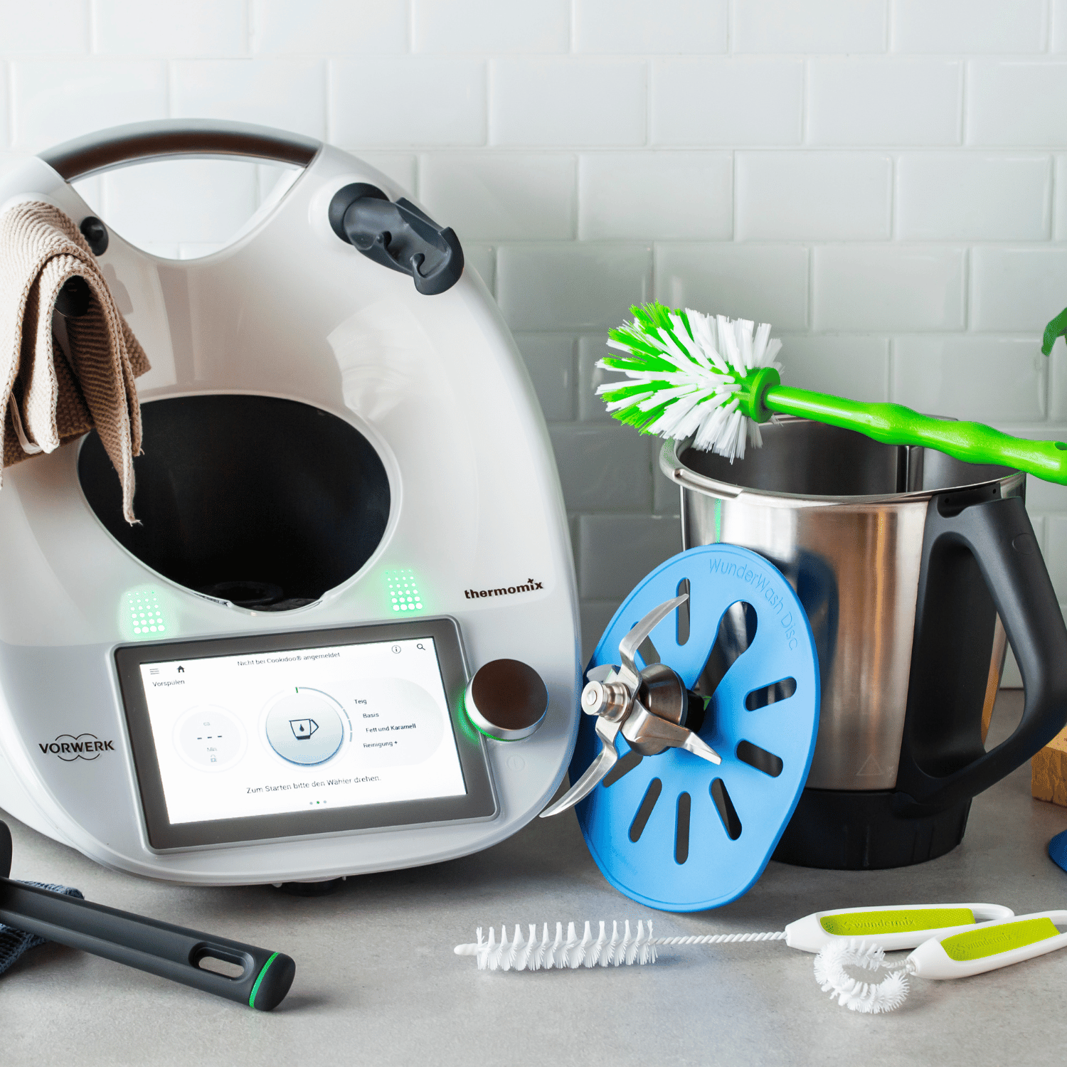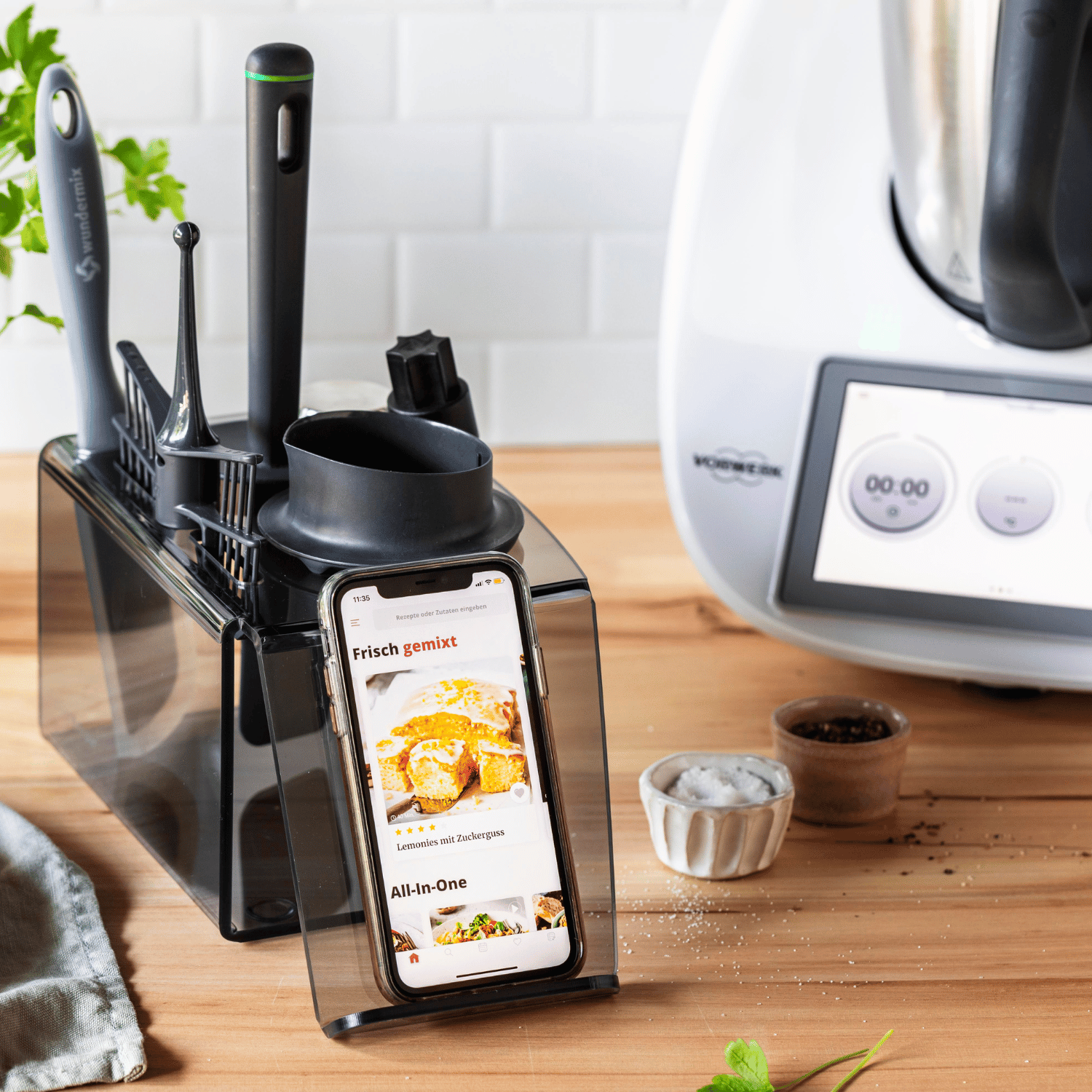 Der TM7 ist optisch das Highlight in Deiner Küche. Damit das Chaos aus Spatel und Schmetterling ihm nicht die Show stiehlt, haben wir den WunderKeeper Utensilienhalter für Dich! Mit dem WunderKeeper bewahrst Du Dein Zubehör ordentlich, sicher und immer griffbereit auf. Schluss mit Suchen: Genieße den aufgeräumten Look, der perfekt zu Deinem TM7 passt. Alles hat seinen Platz in der WunderKeeper Aufbewahrung.